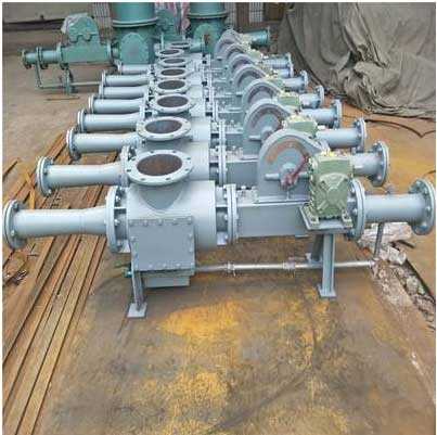 如果裝在電除塵落灰下部,可以一斗一管,赤可兩斗兩斜管;特殊情況赤可四斗四斜管插入一臺料封泵中,但所有落灰斜管的斜度均應(yīng)≥45°。